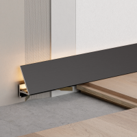 Упрощённая альтернатива скрытого плинтуса, но не требует подготовительных работ по монтажу. Возможно установить подсветку. Прост в монтаже, монтируется с помощью пружинок которые идут в комплекте.