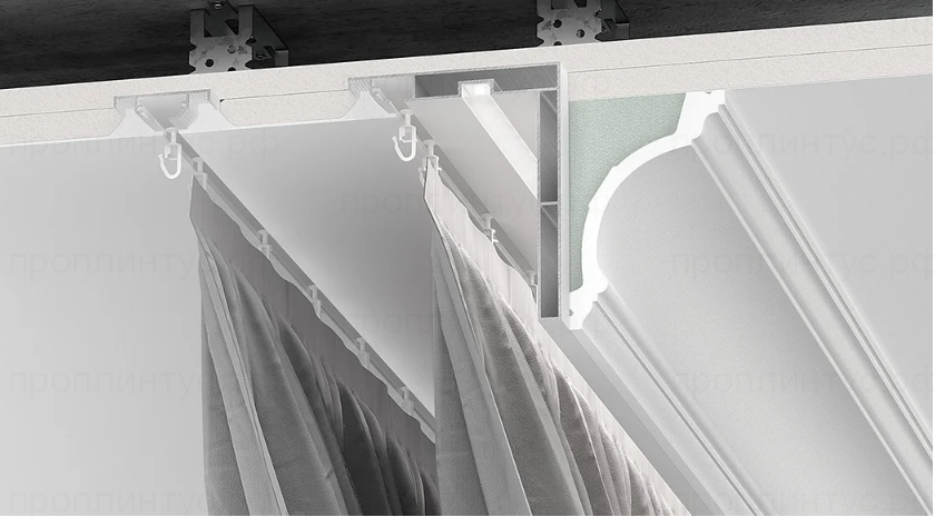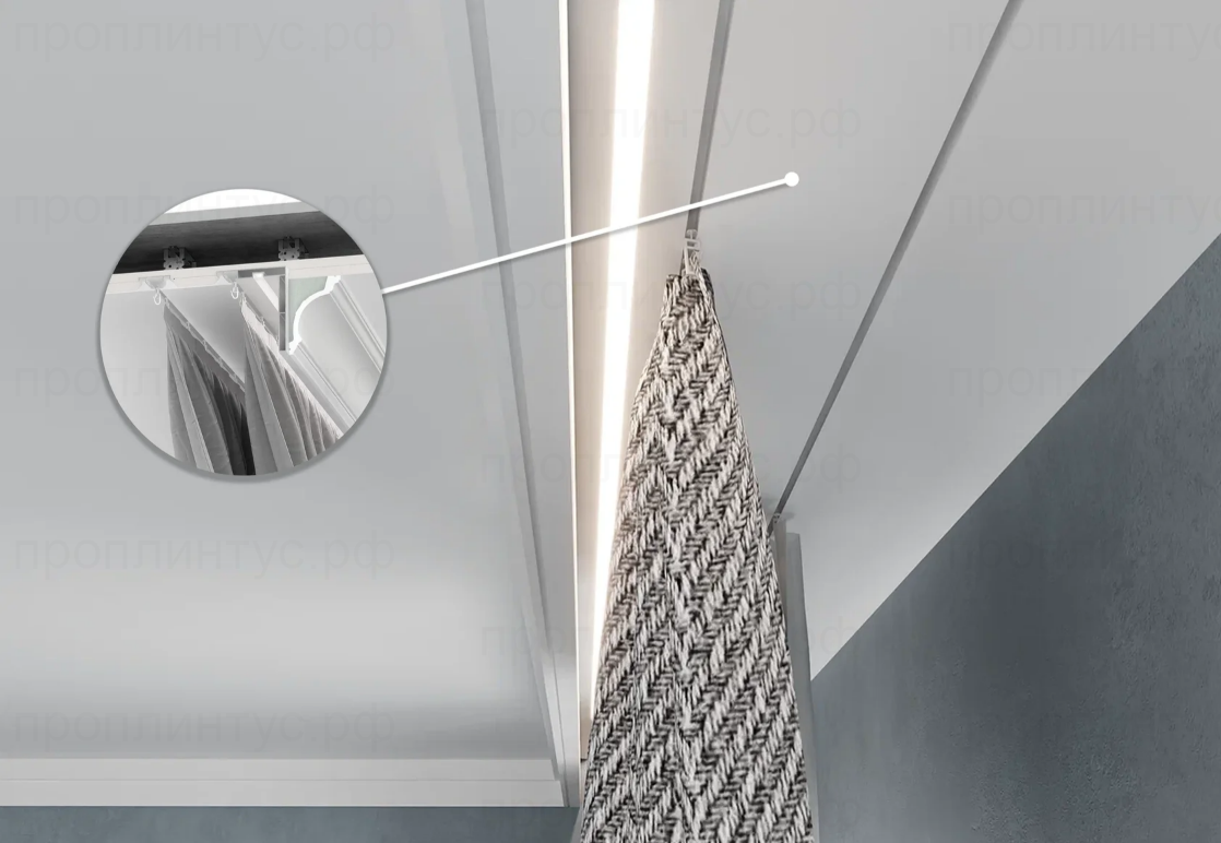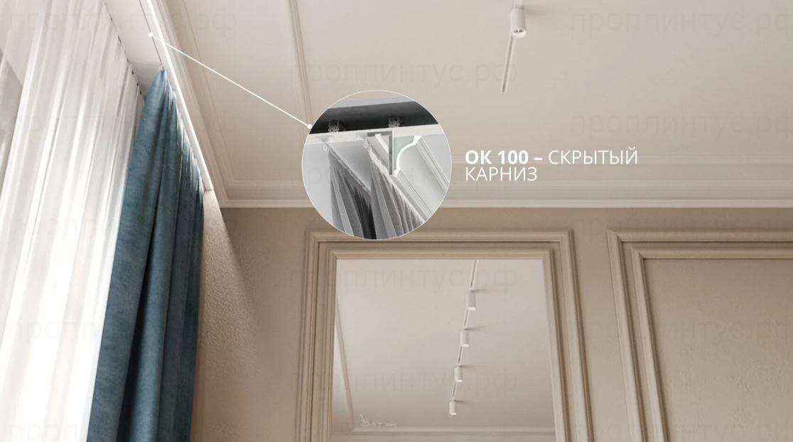 Интернет-магазин ПРОПЛИНТУС.РФ предлагает купить ОК 100 - скрытый карниз, гардина, по выгодной цене с доставкой. Гарантируем отличное качество сертифицированной продукции.