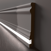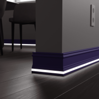Плинтус напольный МДФ c LED подсветкой, коллекция Колорадо. Изготавливается под заказ 5-7 рабочих дней. Возможно изготовления в различных толщинах от 8 до 25 мм и высотах от 60 до 250 мм. Длина: 2800 мм. Цена указана за 1 м.п. Покрытие на выбор: белый под покраску, белая эмаль, окрас в любой цвет по Ral,Ncs.