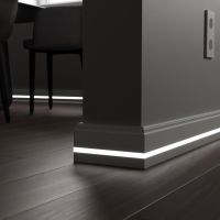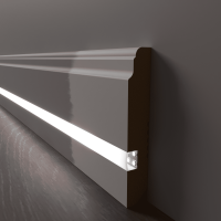 Плинтус c LED подсветкой, коллекция Вирджиния. Изготавливается под заказ 5-7 рабочих дней. Возможно изготовления в различных толщинах от 8 до 25 мм и высотах от 60 до 250 мм. Длина: 2800 мм. Цена указана за 1 м.п. Покрытие на выбор: белый под покраску, белая эмаль, окрас в любой цвет по Ral,Ncs.