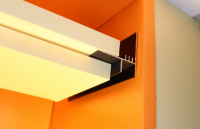 Плинтус теневой для потолка Декопрофиль 7284.05 алюминиевый анодированный, чёрный применяется для создания эффекта "парящего потолка" в помещениях, где строится потолочная конструкция из ГКЛ в один, или в два слоя укладки листов.