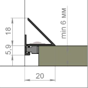 Алюминиевый щелевой плинтус для пола скрытого монтажа без сверления, с возможностью установки подсветки. Крепления осуществляются с помощью клипсы из прессованной стали. Подходит под любое покрытие от 6-ти мм. Профиль продается 6-ти метровым (возможно резка профиля в заданный размер) Покраска профиля по каталогу RAL Classic (стандартный профиль анодриванный чёрный или золотой).
