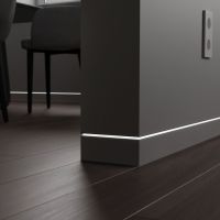 Плинтус скрытого монтажа - это современное решения для Вашего интерьера. Плинтус находится в одной плоскости со стеной - создавая минималистичный дизайн в интерьере Вашего дома. В дополнении к плинтусу можно приобрести мдф вставку под покраску. Монтируется плинтус на этапе черновых работ на жидкие гвозди, дюбель гвозди или клей. Плинтус скрытого монтажа отлично сочетается с дверьми скрытого монтажа.