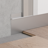 Алюминиевый профиль изготовлен из специального состава, который не окисляется в процессе эксплуатации. Гарантия на профиль 50 лет. Верхняя часть профиля предназначена для крепления ГКЛ и нанесения строительной смеси с последующим нанесением штукатурки и лакокрасочных материалов или других декоративных облицовочных материалов. Скрытый плинтус Ликорн отлично сочетается со скрытыми дверьми invisible.
